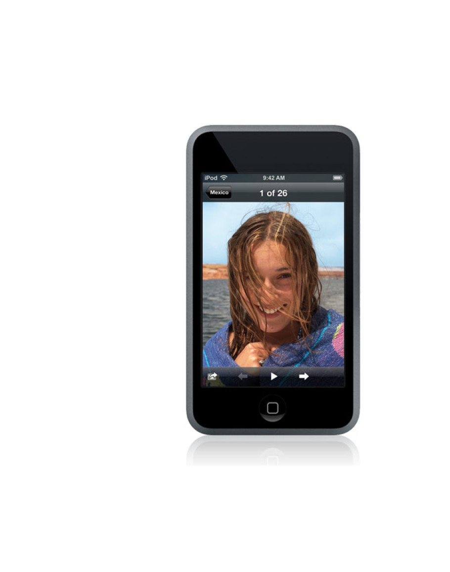 iPod touch features the same multi-touch screen technology as iPhone. Pinch to zoom in on a photo. Scroll through your songs and videos with a flick. Flip through your library by album artwork with Cover Flow.