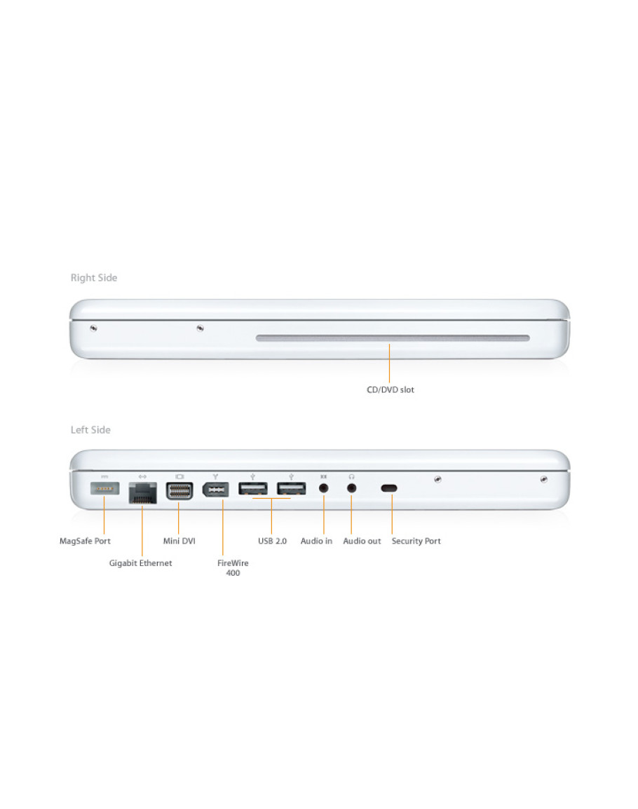 The new MacBook now comes with 1GB of memory standard and larger hard drives for the entire line perfect for running more of your favorite applications and storing growing media collections.
